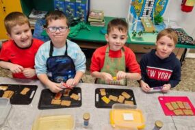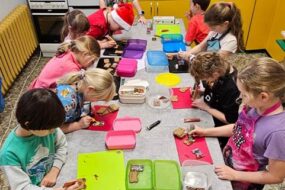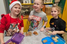 W grudniu dzieci z klas I-III wzięły udział w zajęciach kulinarnych, podczas których przygotowywały pierniki. Używały mąki, miodu oraz aromatycznych przypraw korzennych. Po upieczeniu dzieci dekorowały ciasteczka kolorowym lukrem i orzechami, rozwijając swoją kreatywność. Warsztaty połączyły zabawę z nauką o zdrowym żywieniu i wprowadziły dzieci w świąteczną atmosferę, pełną radości i kolorów.
