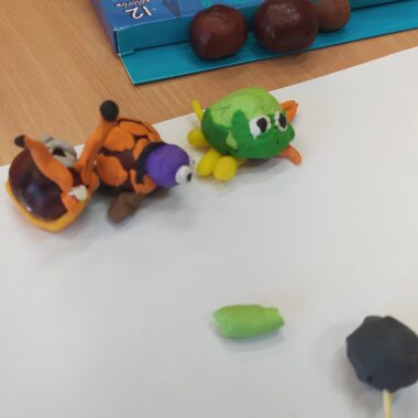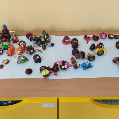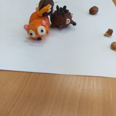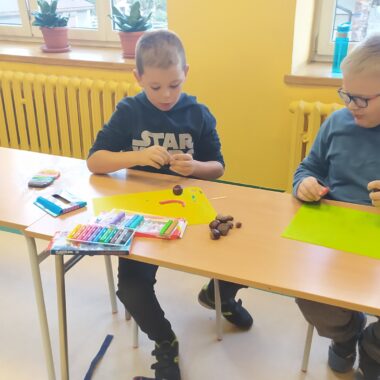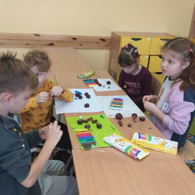 W dniu 28 września 2022r. uczniowie klasy 2a podczas zajęć technicznych tworzyli z kasztanów, żołędzi i plasteliny ciekawe zwierzątka.