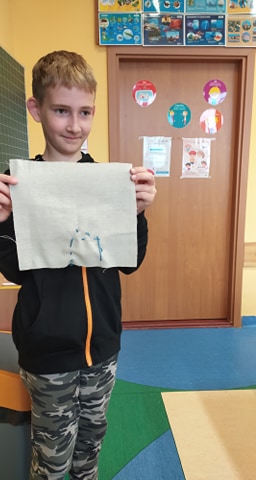W dniu 29 września 2020r. podczas zajęć z edukacji technicznej uczniowie klasy trzeciej rozpoczęli swoją przygodę z haftem.