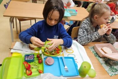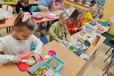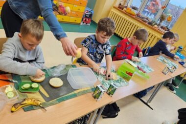 Zdrowe śniadanie przygotowane przez uczniów klasy Ia.